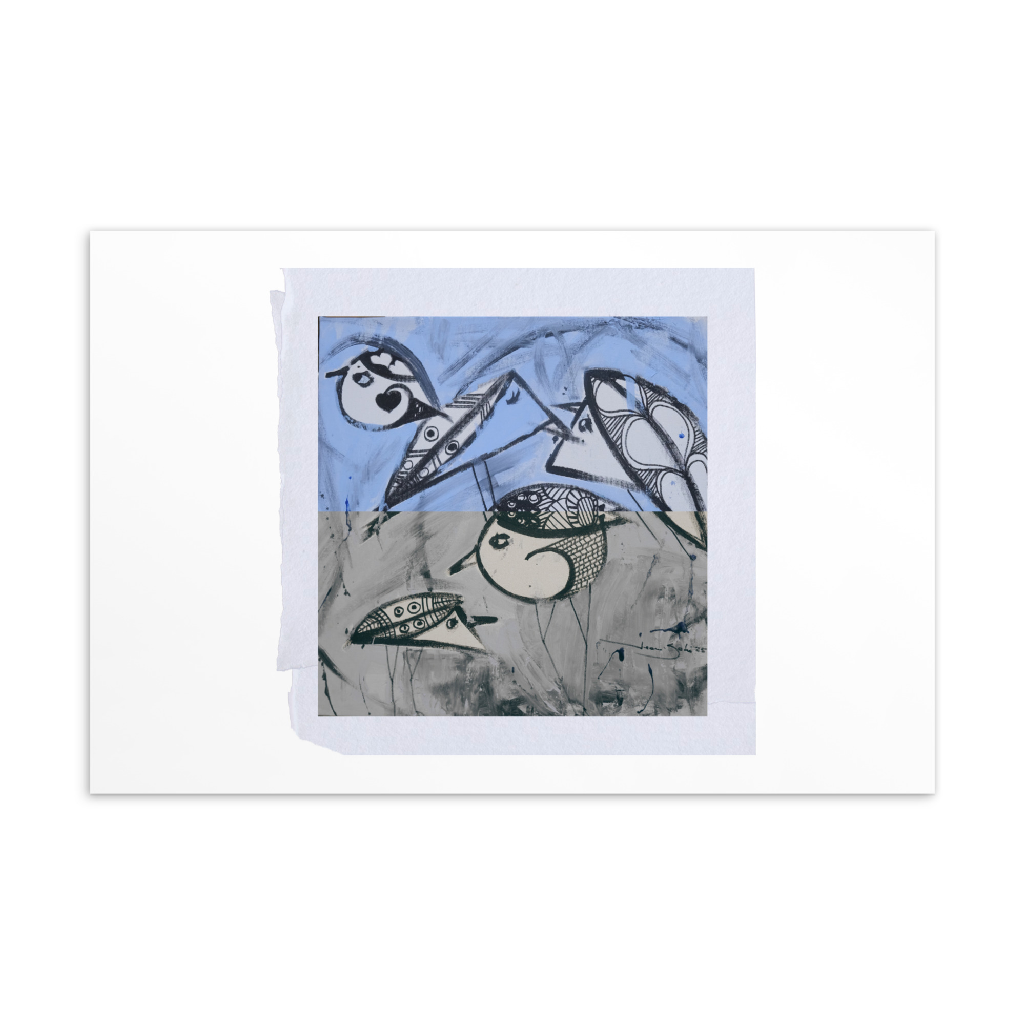 Birds of Beirut photomontage postcard in color and grayscale. Contemporary art print featuring urban birds of Lebanon. Print-on-demand quality, perfect for collectors or as a unique greeting card.